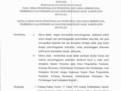 SK PENETAPAN STANDAR PELAYANAN DP2KBP3A